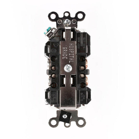 Leviton 16262-HGW Hospital-Grade Decora Duplex Receptacle, 15A, Self-Grounding (White)