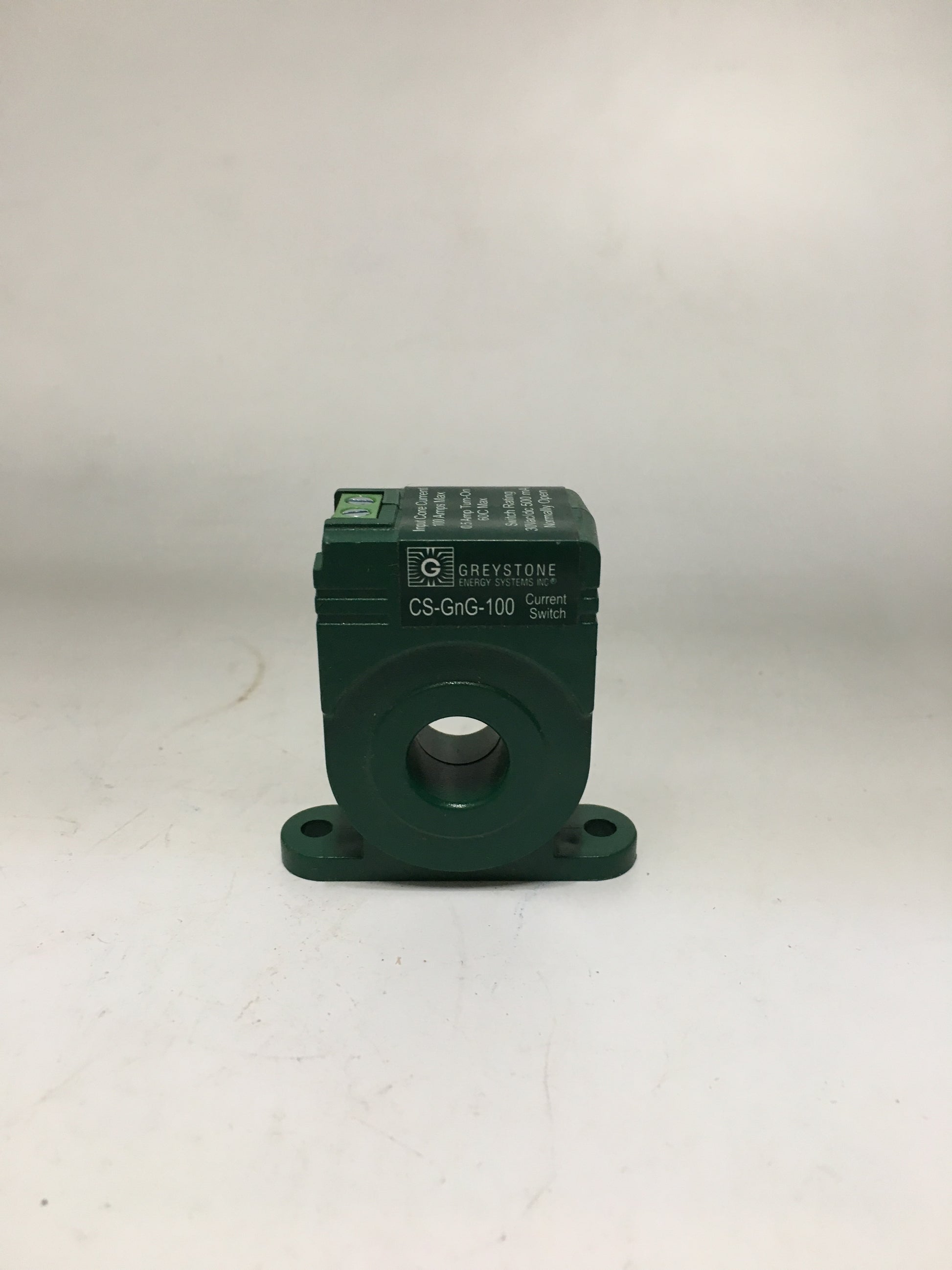 The CS Series current switch monitors line current for electrical loads such as pumps, conveyors, lighting, heaters or fans and closes the output contacts when the trip point is exceeded. The CS-GnG-100 has a factory set trip point of 0.5 Amps to provide Go/No Go status operation.