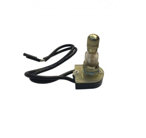 The Gardner Bender 6/3 Amp Rotary Switch features a brass knob to highlight your decor. The switch is compatible with a 13/32 in. mounting hole and is ideal for use with lamps or other light-duty applications. This switch offers single-pole, single-throw (SPST) on-off circuitry and has 6 in. 18 AWG wire leads for installation.