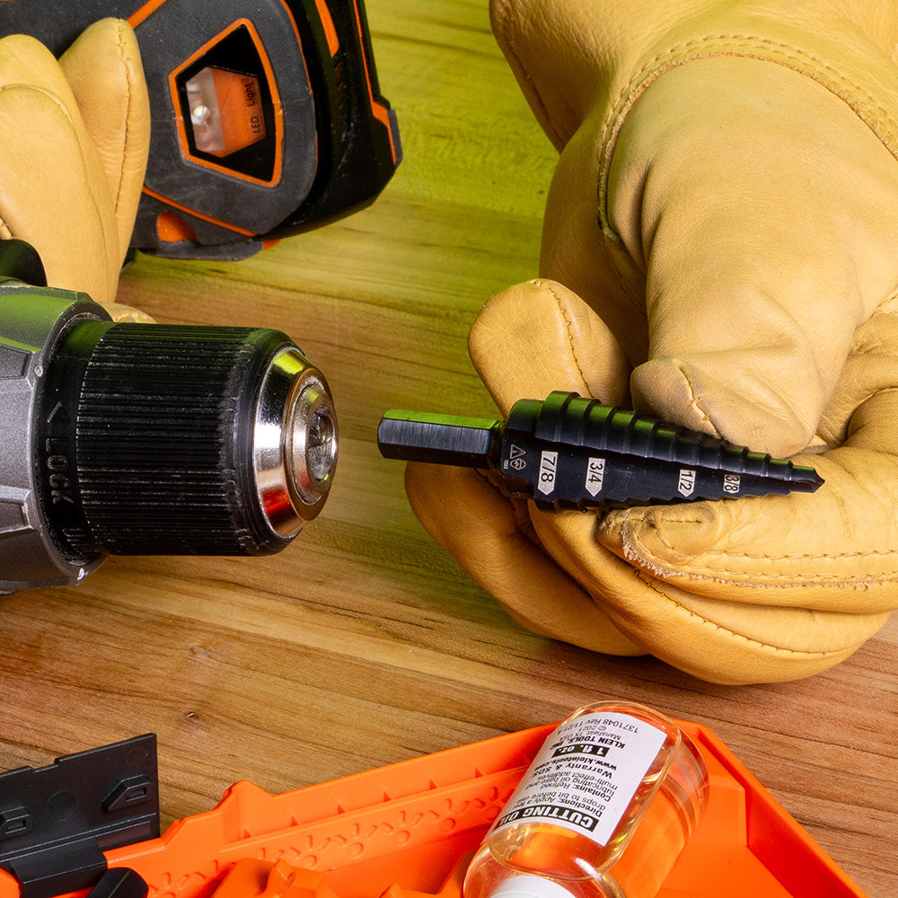 Klein Tools KTSB14 12-Step Drill Bit, 3/8-Inch Hex, Double Straight Flute, 3/16-Inch to 7/8-Inch