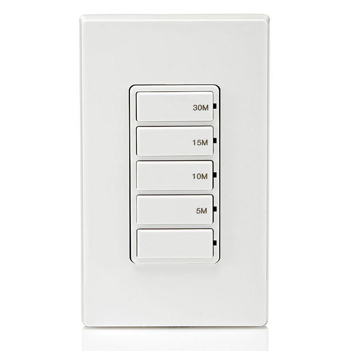 - CONVENIENT – replace your current wall switch with a countdown timer to automate fan/motor loads and lights. Four preset time buttons, press to turn on and automatically turns off when time expires
