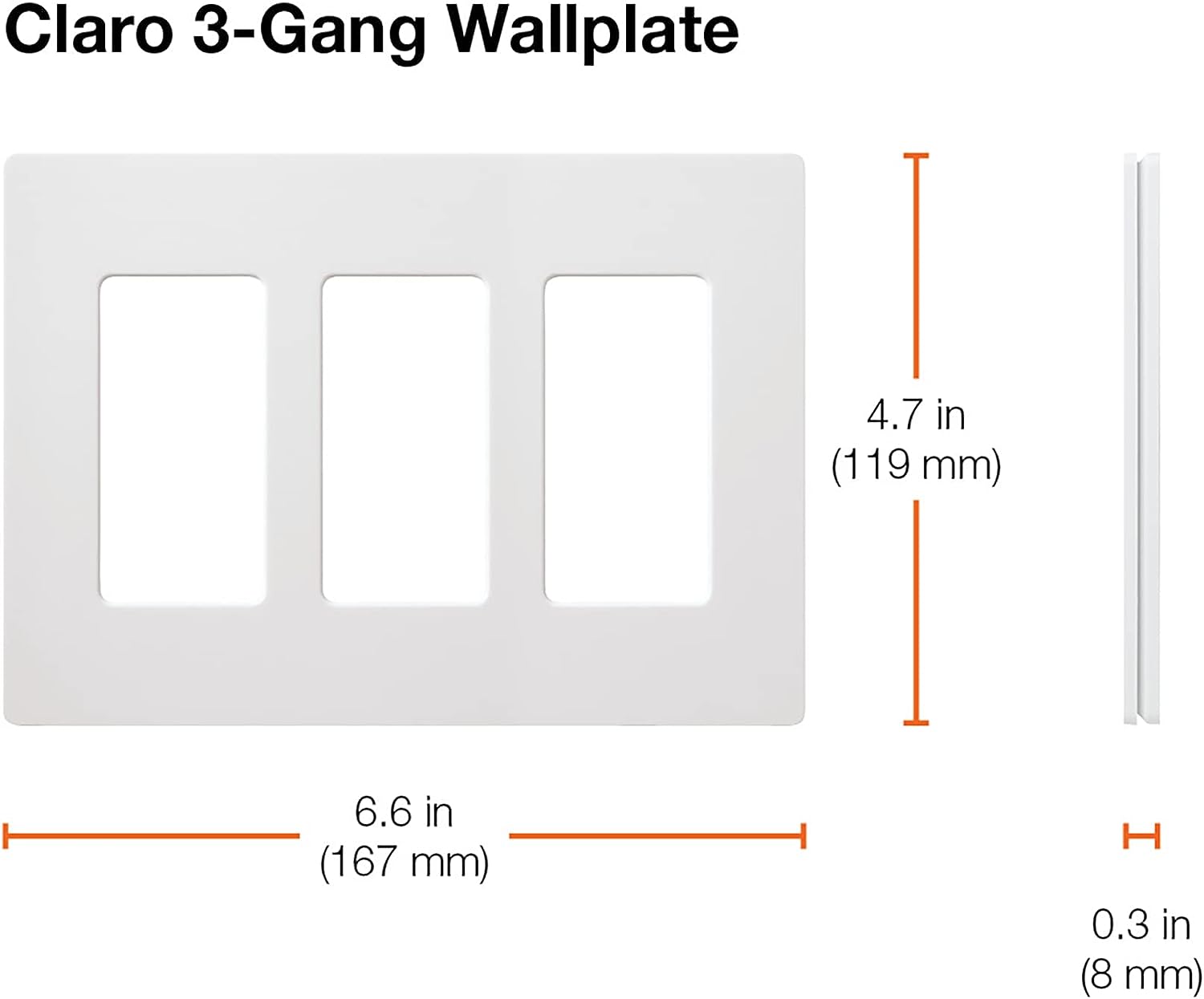 Lutron CW-3-WH Claro 3 Gang Wallplate, Gloss White