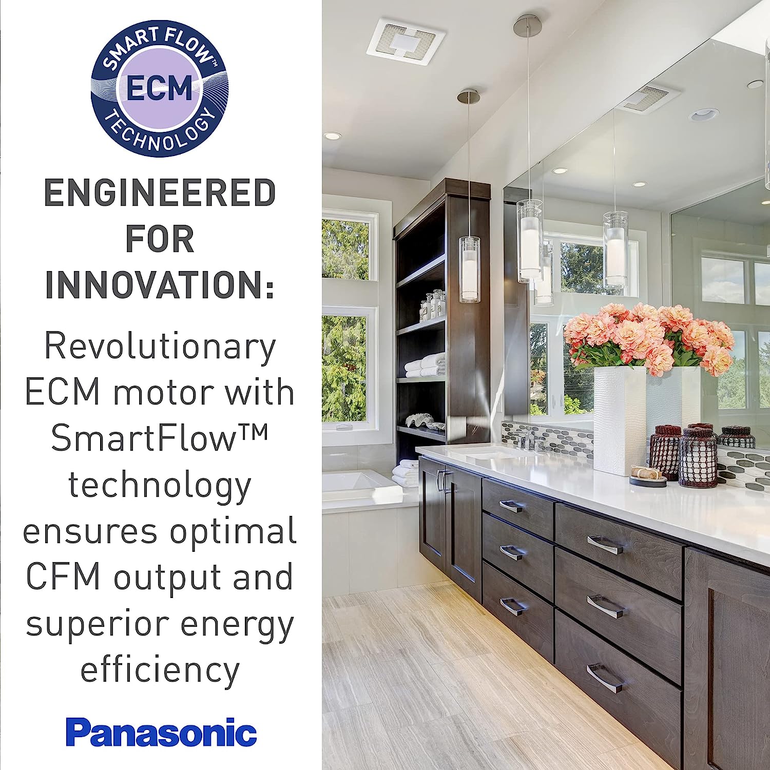 The Panasonic FV-0510VS1 WhisperValue® DC is the lowest profile, ENERGY STAR® rated ventilation fan on the market. Perfect for residential construction, including single-family, multi-family, and manufactured homes, this fan ensures efficient and quiet ventilation. Its revolutionary ECM motor with SmartFlow™ technology adjusts to deliver optimum CFM, while the Pick-A-Flow® Airflow Selector allows users to customize airflow at 50, 80, or 100 CFM.