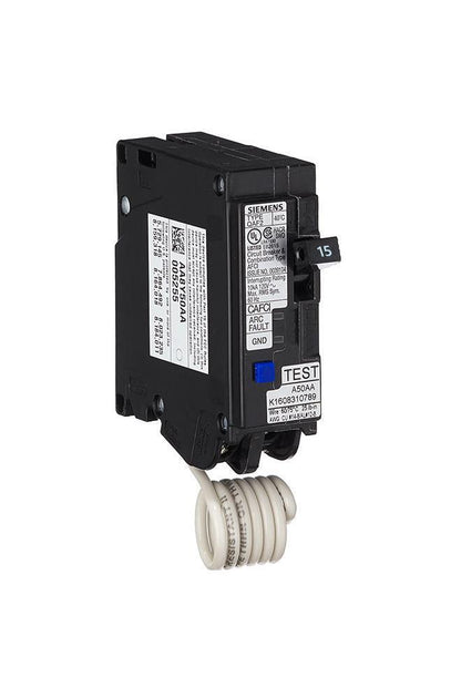Siemens QA115AFCCSA 15 Amp 1-Pole Combination Arc Fault Circuit Breaker (AFCI) is a reliable solution for protecting your electrical circuits from potential arc faults and fire hazards. Designed for compatibility with Siemens Type 'EQ, EQL, SEQ, EQG Loadcenters, this breaker features an LED trip indicator and a center-trip position for added convenience.