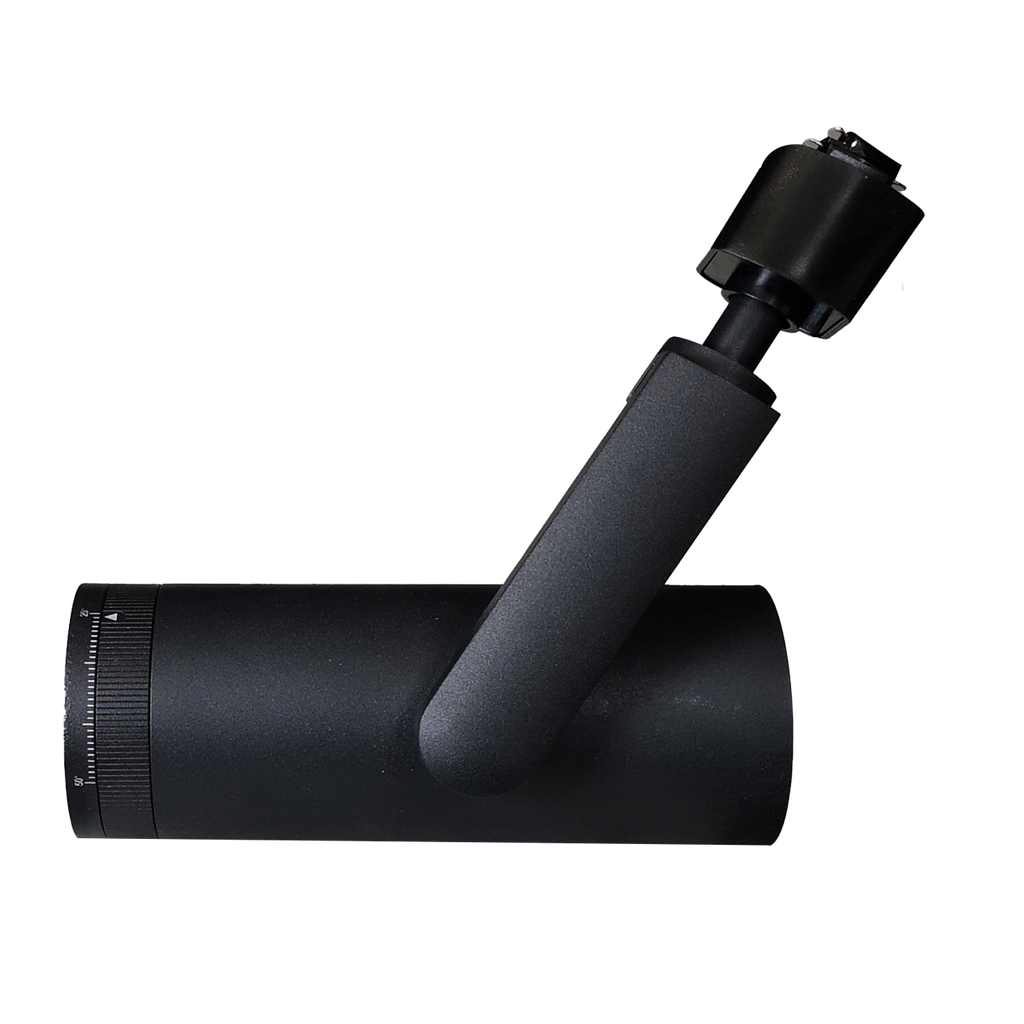 Architectural LED track head for Halo-style systems with a zoomable optic and field-selectable color temperature. The adjustable yoke allows smooth pan/tilt aiming for retail, galleries, and accent lighting.