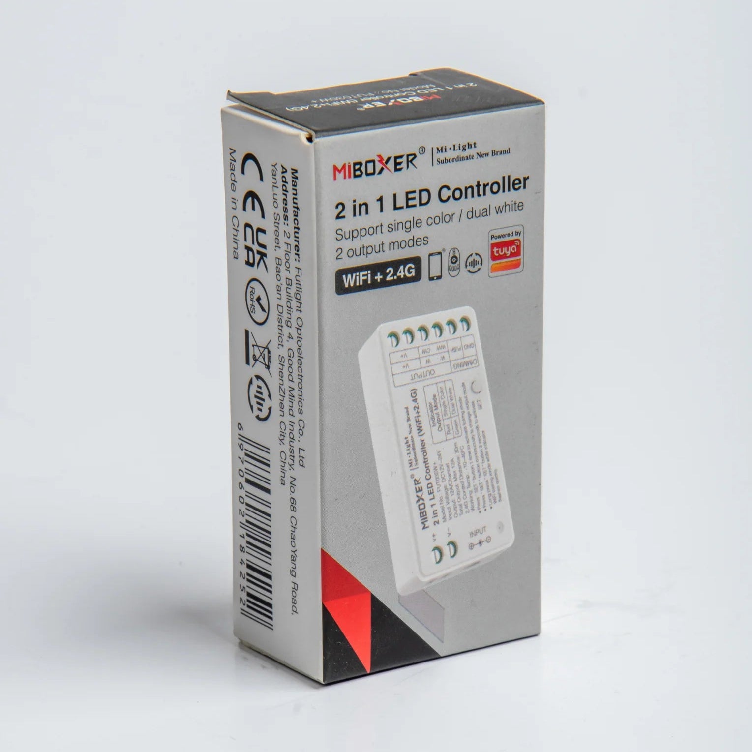 The Smart LED Strip Transponder is a versatile 2-in-1 controller designed to manage both single color and CCT (tunable white) LED strip lighting. Featuring WiFi and Bluetooth connectivity, this smart controller allows seamless control through the Tuya Smart or Smart Life app, giving users full access to dimming, color temperature adjustment, scheduling, and automation features.